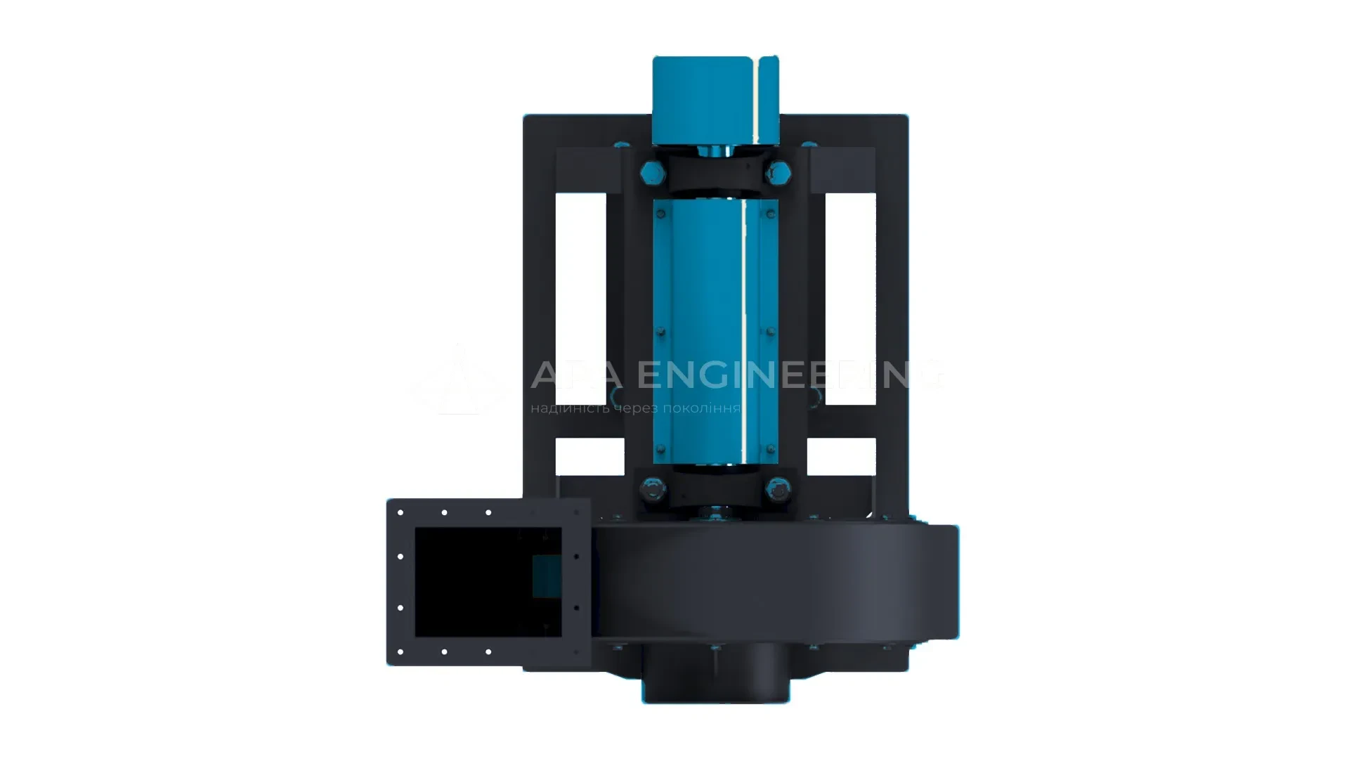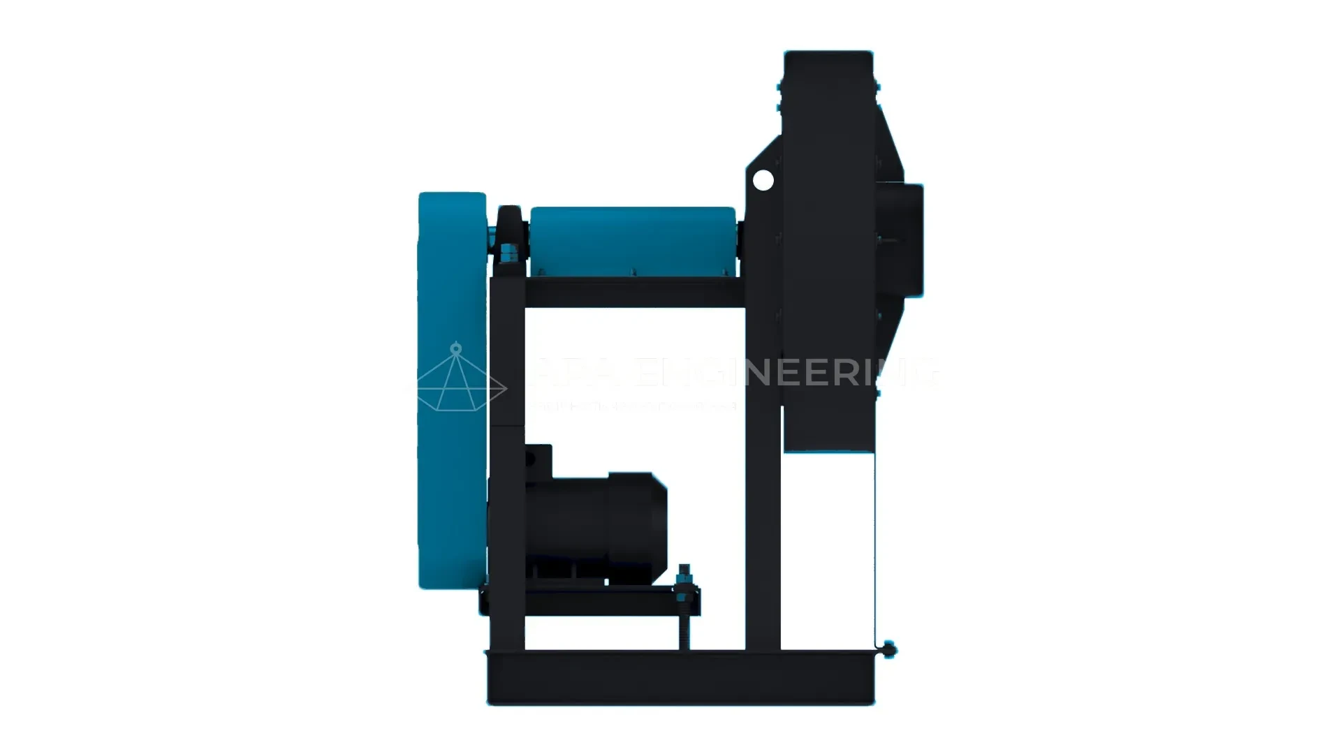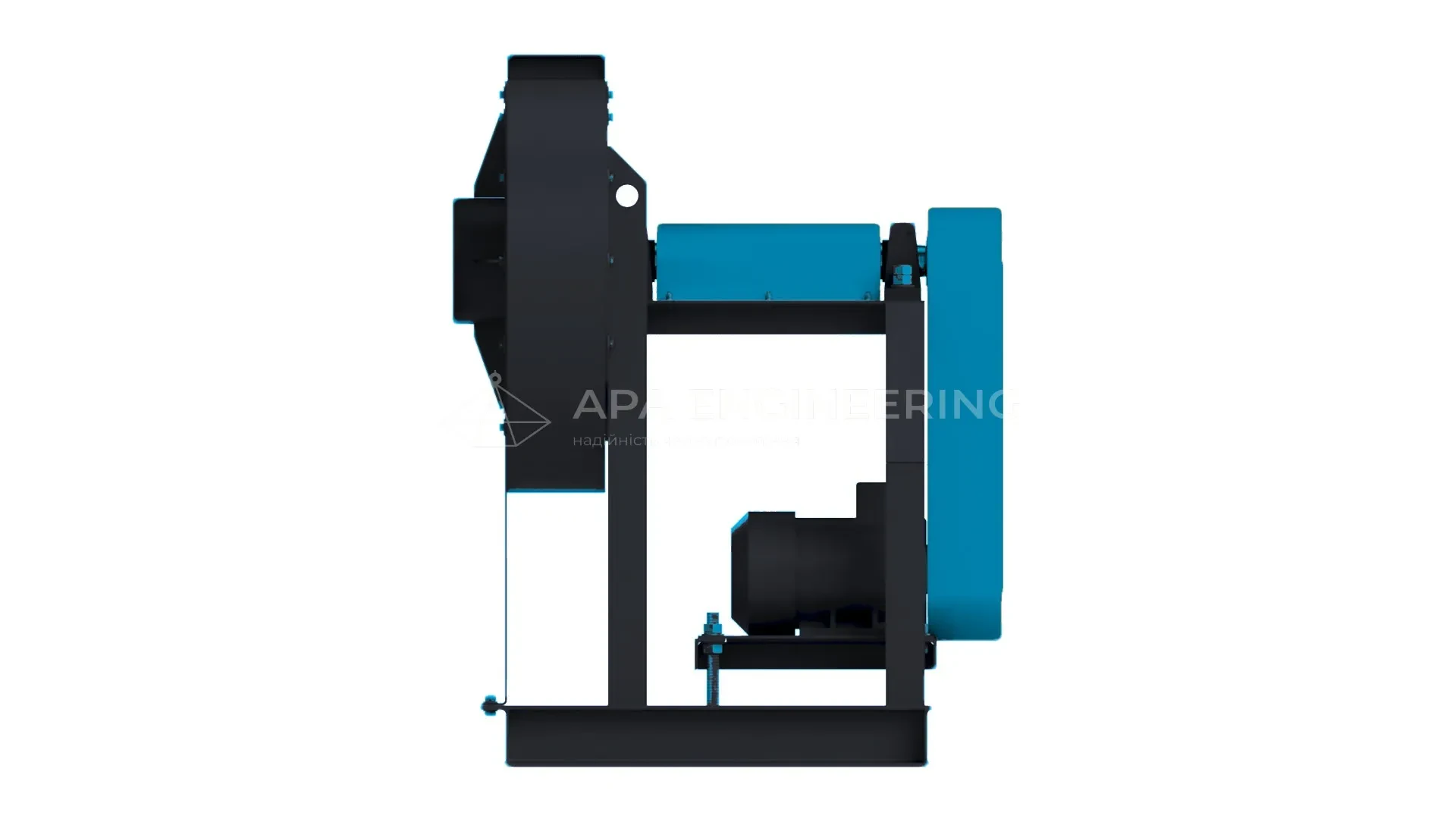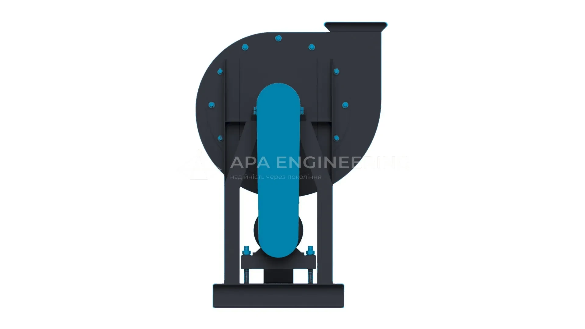 - Станина вентилятора (рама) Станина металева, зварна. До неї кріпляться всі основні вузли відцентрового вентилятора. Для кріплення до монтажної поверхні в рамі передбачені отвори, які також можуть бути використані для установки вентилятора на віброізолятори.