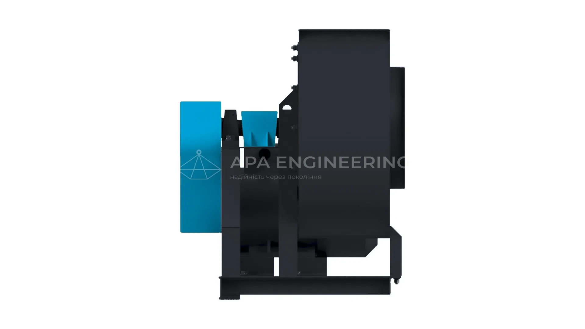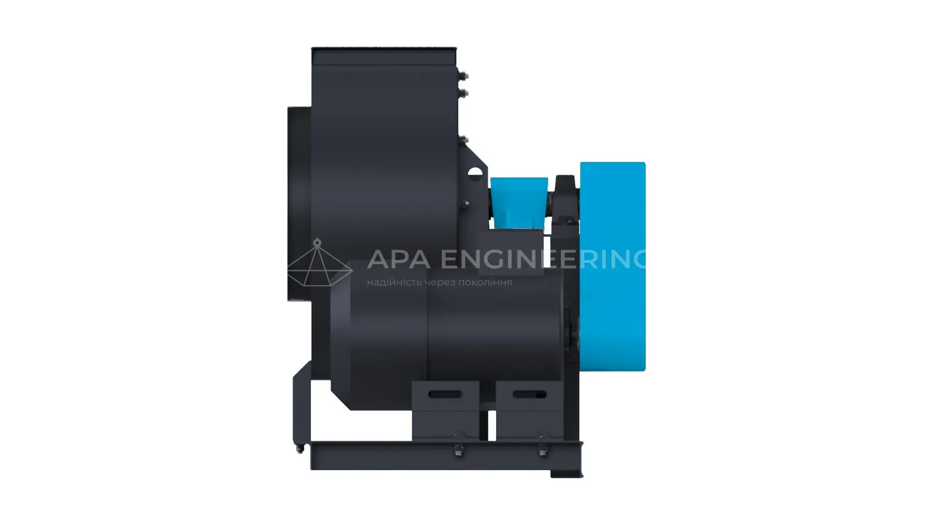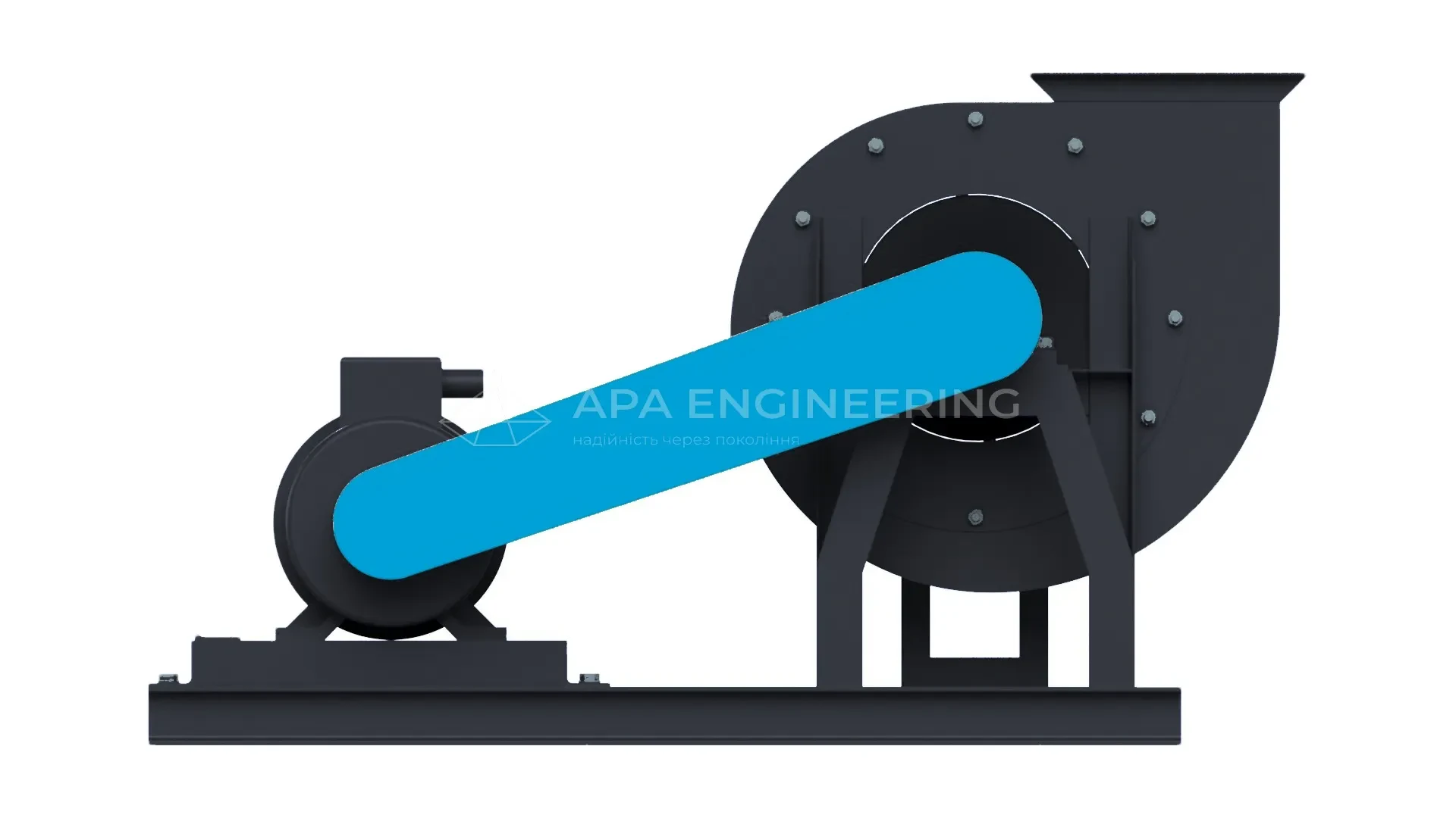 - Станина вентилятора (рама) Станина металева, зварна. До неї кріпляться всі основні вузли центробіжного вентилятора. Для кріплення до монтажної поверхні в рамі передбачені отвори, які також можуть бути використані для установки вентилятора на віброізолятори.